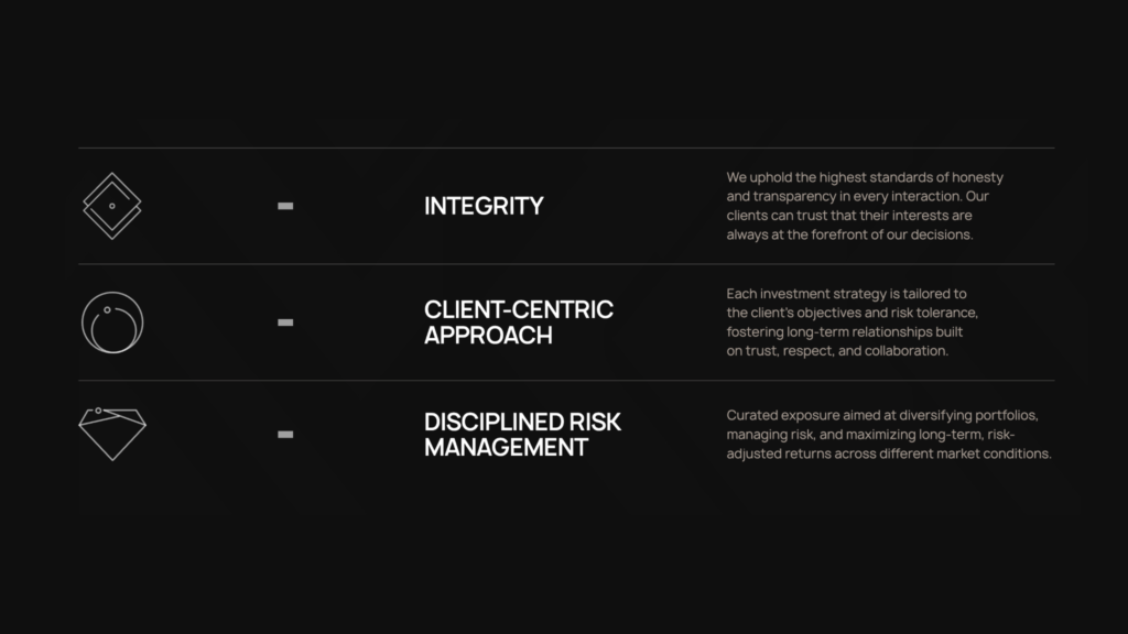 • Integrity as a structural practice: The firm’s stated commitment to honesty and transparency is backed by operational mechanisms rather than left as an abstract value statement.