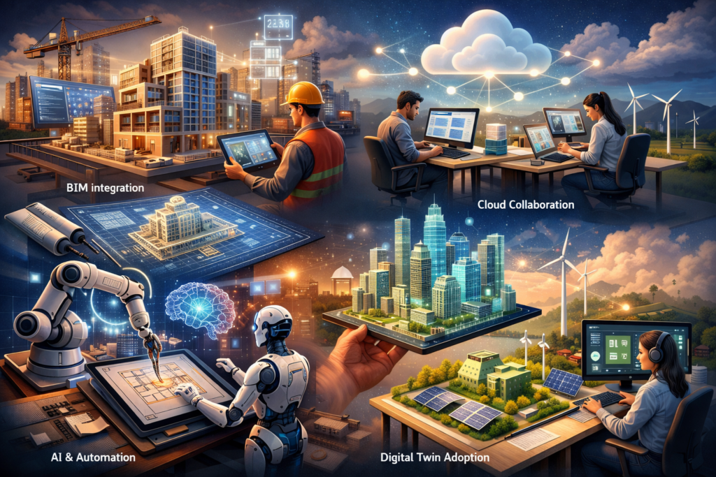 Platforms integrated with tools like Revit allow real-time collaboration across geographies.